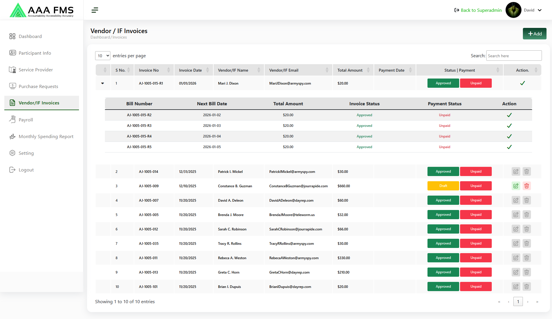 The invoice module makes submitting invoices simple and efficient. Review, approve, and submit vendor invoices on their behalf while easily tracking payment dates. Approved invoices are guaranteed payment within 10 business days.