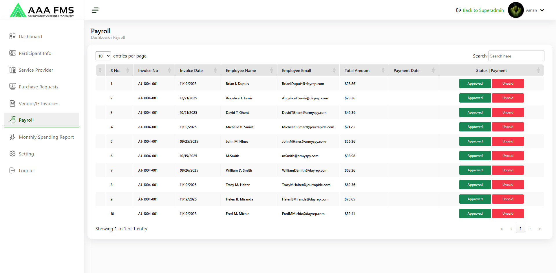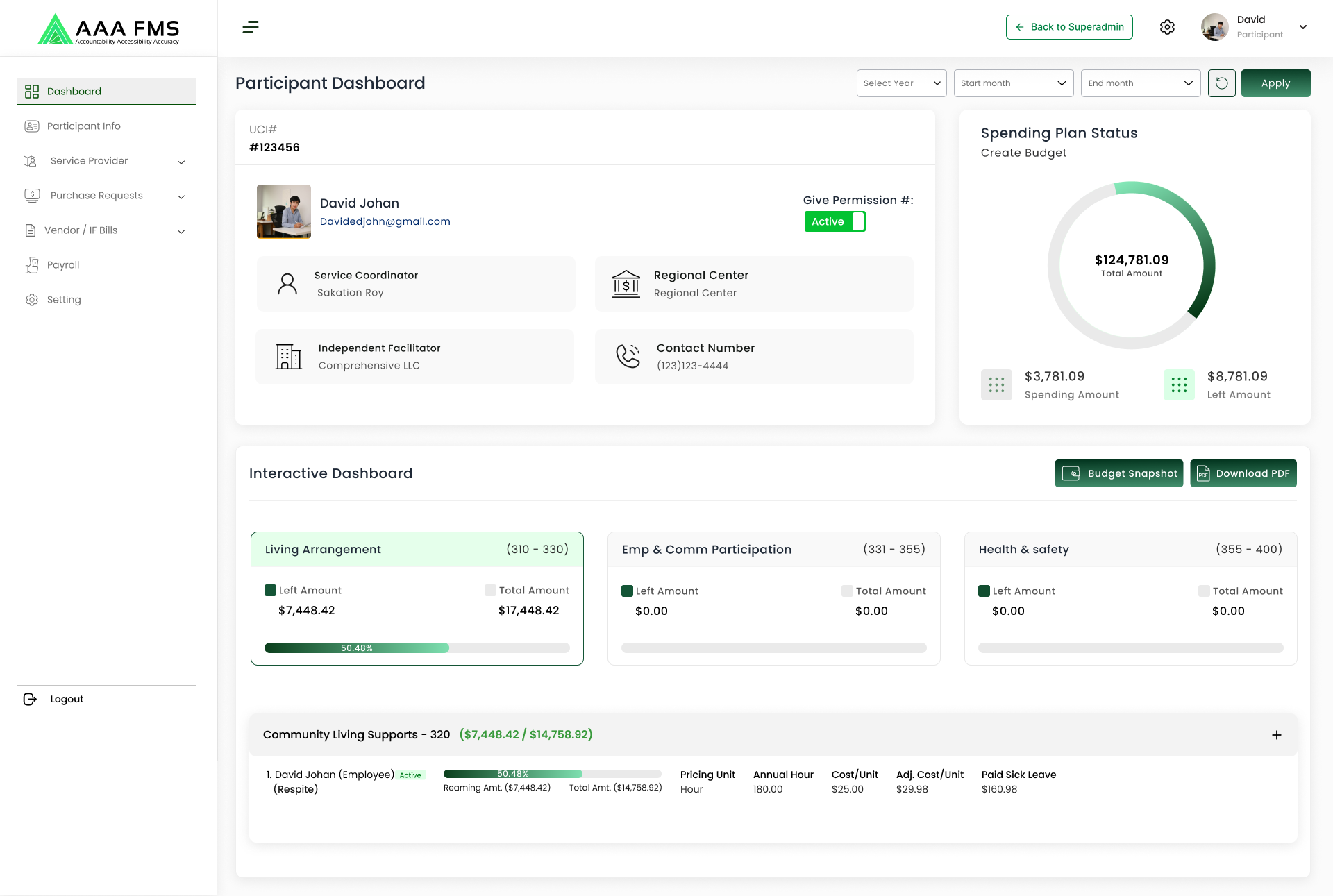 View all respective Participants. Make budget edits with proper approvals. Birds eye view of Participant budgets
