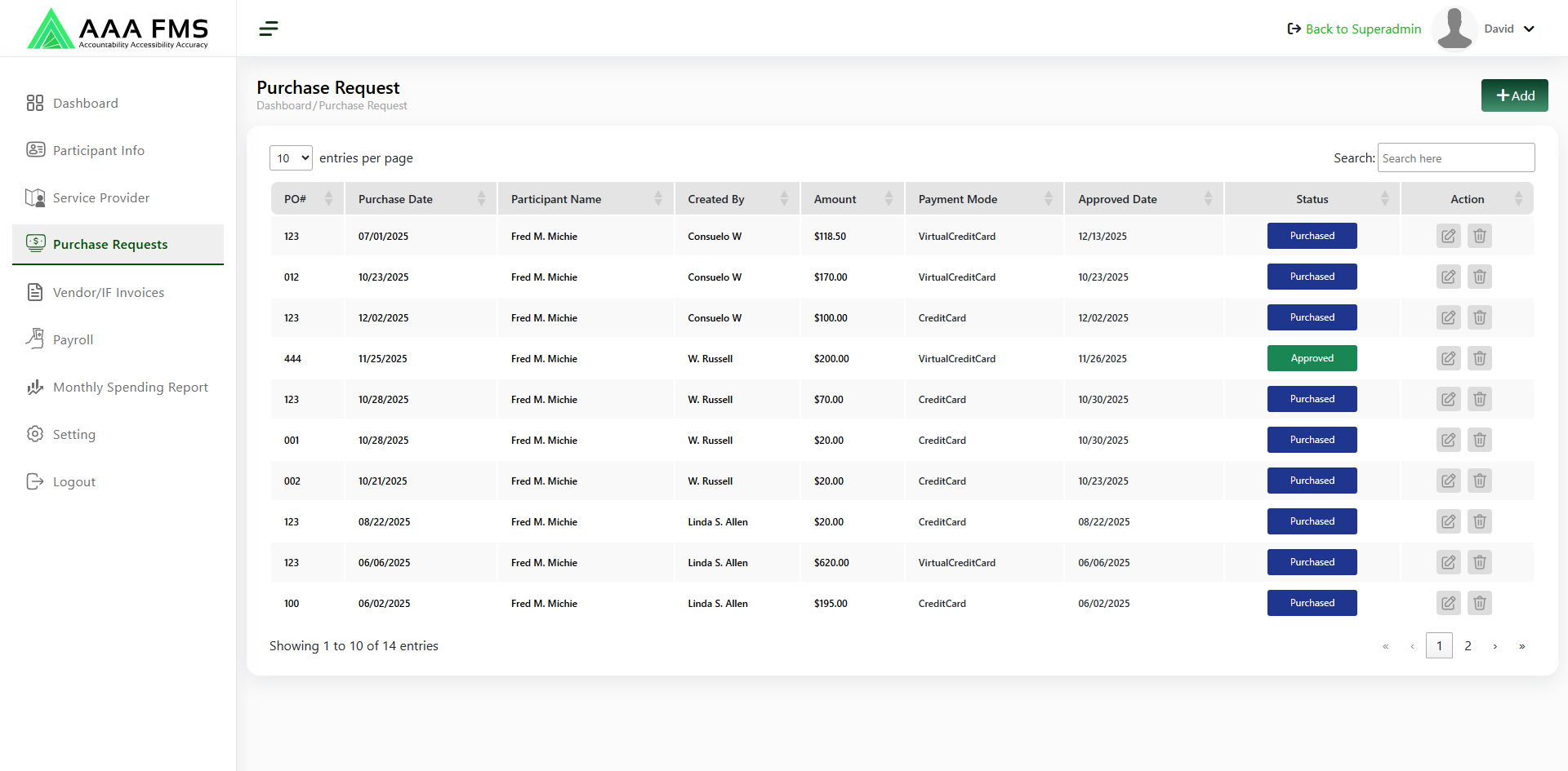 The purchase order module allows you to easily submit purchase requests and track their approval status. Once approved, you receive a virtual credit card for fast and secure payments. This streamlines purchasing while keeping spending aligned with your budget.